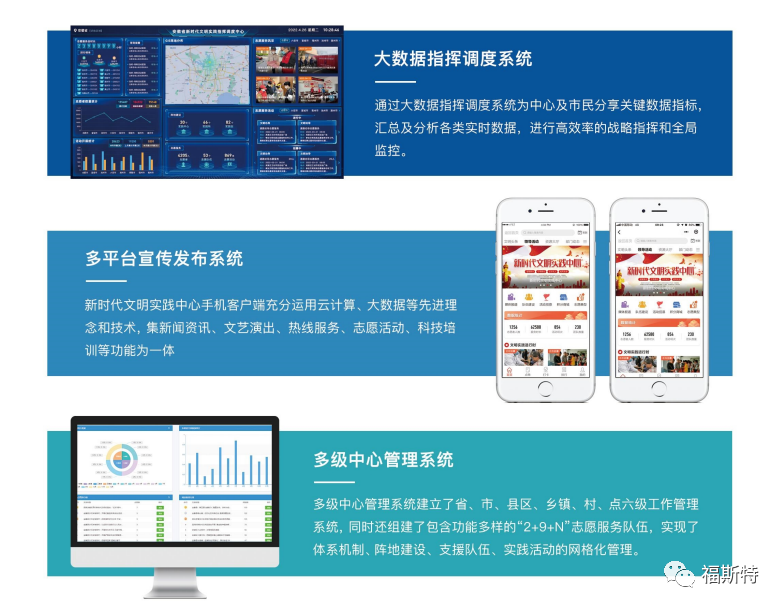 安徽福斯特信息技術有限公司持續(xù)助力新時代文明實踐中心建設,充分利用大數據、云計算、移動互聯網等新一代信息技術,打造新時代文明實踐中心云平臺,完善平臺動員、整合、引導、服務、創(chuàng)新和保障能力,實現新時代文明實踐中心的可持續(xù)運營。
